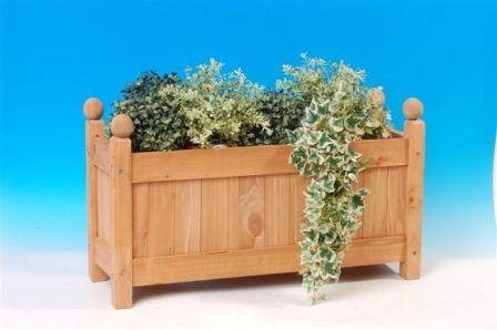 An excellent quality wooden planter, this is a signature piece for gardening which works well in all types of settings. It's a stylish planter designed to last for many years and it's perfect for potting plants, shrubs and herbs. Complimented in an elegant light wood painted finish and coated in preservative which gives weatherproof protection Measures: Height: 34cm, Width 59cm, Depth 20cm